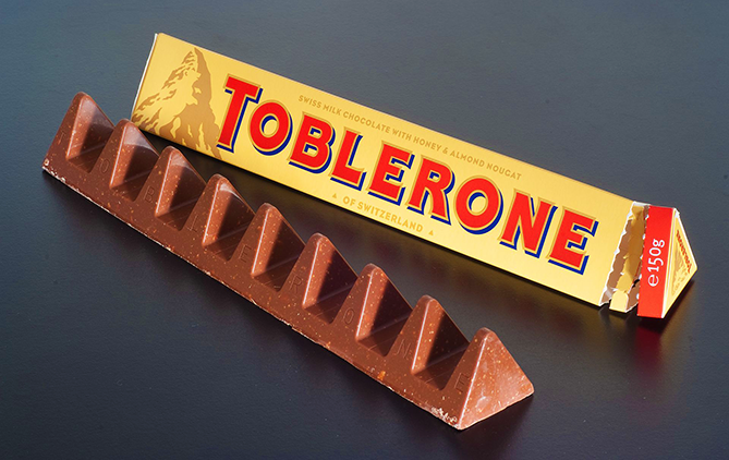 این شکلات ها نمونه ی بارزی از خلاف جهت رودخانه شنا کردن هستند. سازنده ی اصلی برند توبلرون، شکلات سازی سوئیسی آقای تئودور توبلر، اولین بار در سال 1906 تصمیم گرفت شکلات های عسلی و بادامی اش را در اشکال مثلثی برخلاف شکل های معمولی شکلات تولید کند. این طور که پیدا است آقای توبلر و مدیر تولیدش، آقای امیل بایمن، از کوه ماترهون در سوئیس که به قله ی متقارن و هرمی اش معروف است الهام گرفتند تا شکلات های توبلرون را در قالبی مثلثی بسازند.